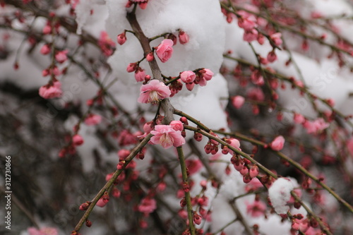 梅の花 雪と梅の花 積雪の梅の花 紅梅 梅の木