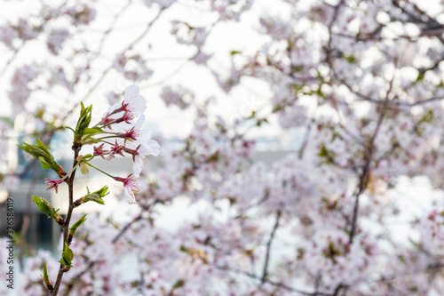 横浜みなとみらいの桜(撮影場所:横浜国際橋)
