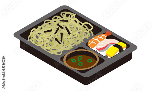 お持ち帰りの冷たいざるそばと握り寿司のお弁当