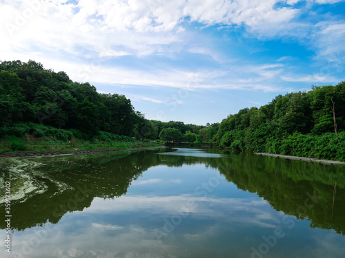 池に反射する空。日本・埼玉県