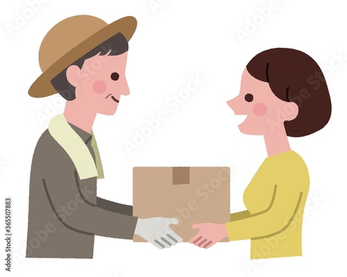 男性農家から荷物を受け取る女性