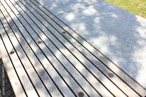 公園のベンチの木漏れ日