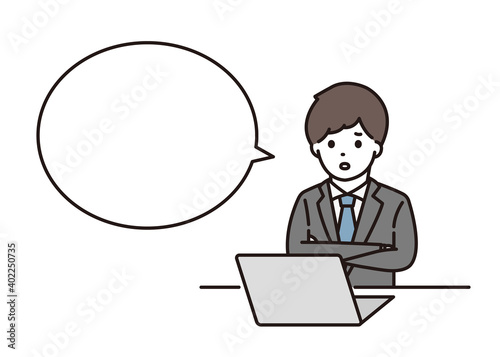 パソコンの前で腕組みをするビジネスマン 吹き出し