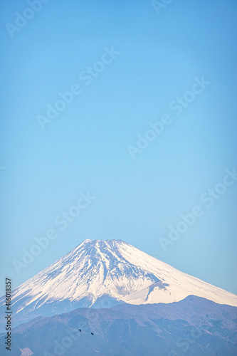 【静岡県】冠雪した富士山と駿河湾