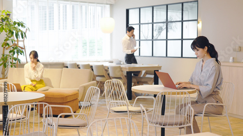 カフェで働くビジネスマン