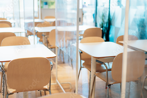 アクリル板が設置された飲食店