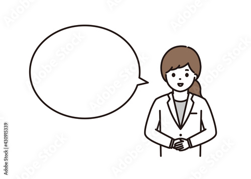 手を前で組む女性薬剤師 吹き出し
