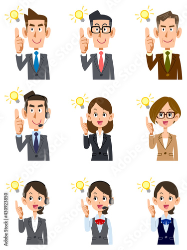 アイデアをひらめく会社員の男女の上半身セット