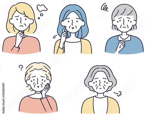 困り顔 シニア女性セット シンプルイラスト