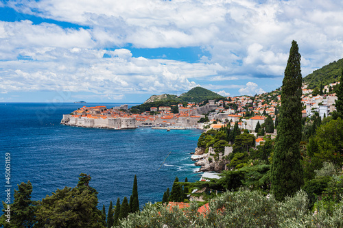 クロアチア ドゥブロヴニクの旧市街の街並みとアドリア海