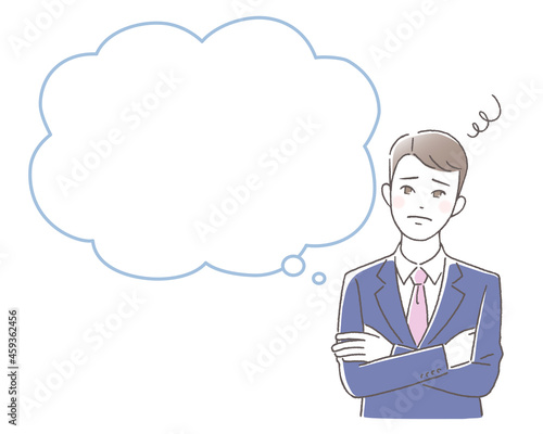 腕組みして考えている若いビジネスマンと吹き出し