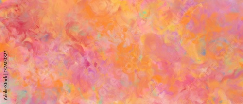春の油絵抽象背景)パレットナイフペインティング・アート横長バナー 温かい ピンクとオレンジ