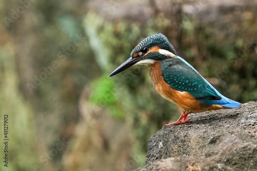 岩の上から必死で餌を探すカワセミ幼鳥オス