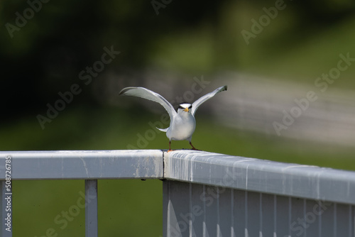 強風に煽られて体勢を崩し踏ん張るコアジサシ