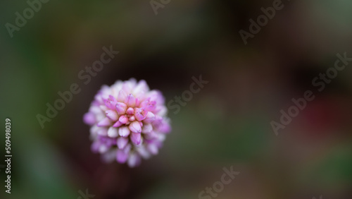ネギの花に似たピンクと白の小さな花弁が集まった花のマクロ
