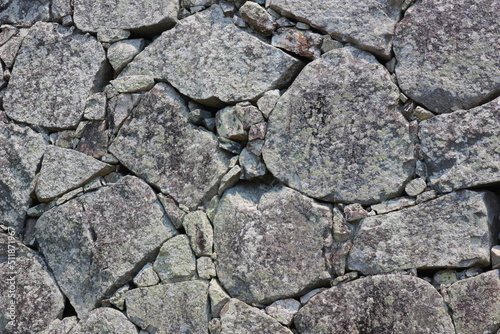 緑に囲まれた福岡城跡。石垣や塀などの歴史的建造物。福岡城は舞鶴公園と大濠公園にある。日本、福岡県