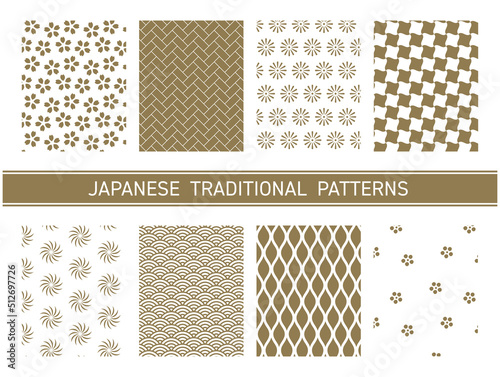 金色の和柄のパターンセット