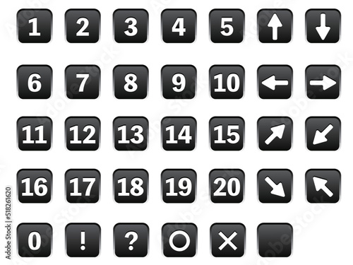 四角いボタン風の数字と矢印のアイコンセット