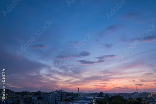 朝日 朝焼け 朝 夜明け 都会の朝 住宅街の朝