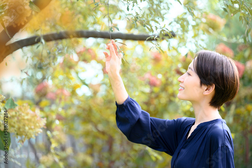 秋イメージ 旅行などで季節を楽しむ人