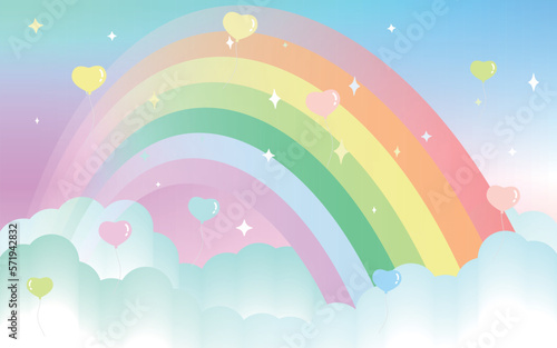 ハートの風船と星と虹のゆめかわなグラデーション背景