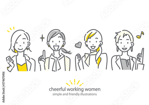 充実している笑顔のビジネスウーマン 働く女性 シンプルでお洒落な線画イラスト