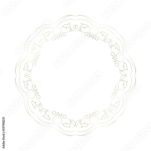 素材_フレーム_イルカをモチーフにした金色の飾り枠。高級感のある夏のイメージ。字無