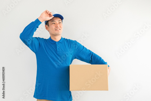 段ボールを持つ引越し業者・配達員の男性(引越し・配達・軽貨物ドライバー・宅配・配達員・宅急便)