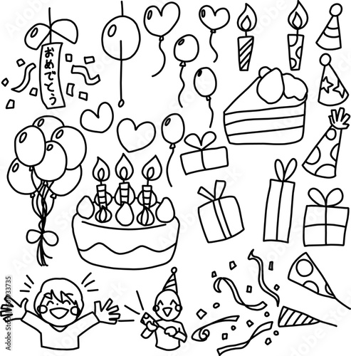 誕生日などパーティーやお祝いをイメージした線画セット