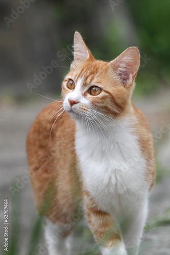 歩みを止めて遠くを伺う仔猫