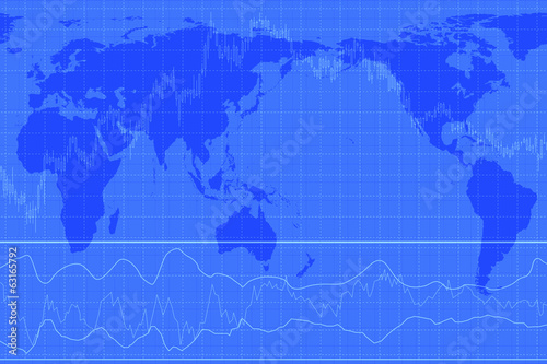 株価のグラフと世界地図