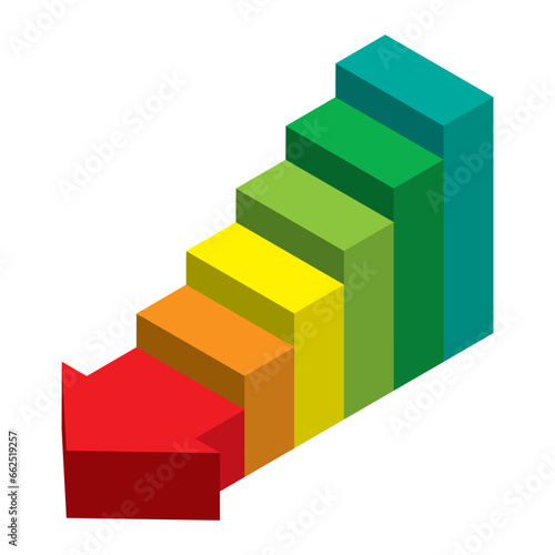 ビジネス向けインフォグラフィックス アイソメトリック階段状になった立体的な矢印のイラスト 色相環