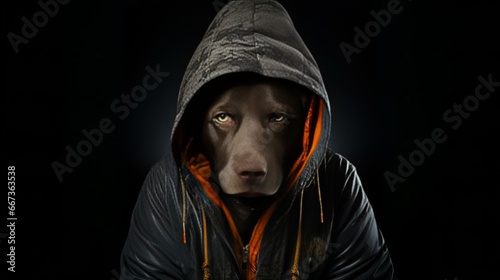 黒いフードを被った犬