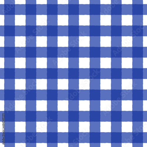 手描きの紺色と白のギンガムチェック柄のパターン - シンプルでおしゃれな背景素材 - 正方形