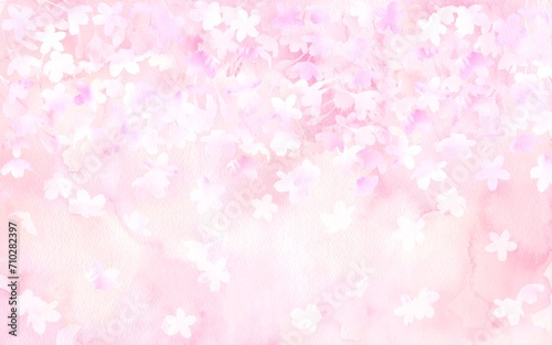 美しい水彩の桜が咲き乱れる。ピンク色の春満開イラスト。