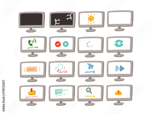 モニターに映るアイコンのイラストセット