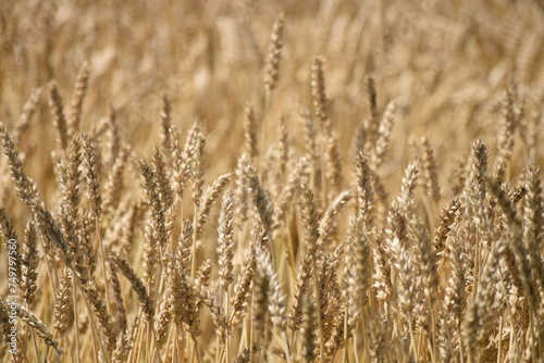 初夏の麦畑、実った小麦畑の風景
