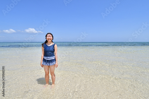 ビーチで遊ぶ女の子(フィリピン、パンダノン島)
