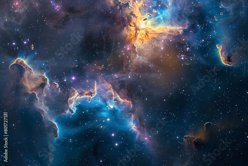 銀河の中に広がる幻想的な宇宙空間。星雲と光が織りなす神秘的な風景
