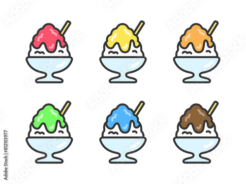 色んな味の、かき氷のアイコン(線画カラー)のイラスト