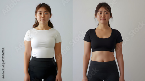 デザインの違うトレーニングウェアを着た女性を左右比較している画像