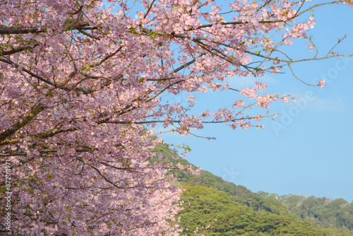 青空と満開の河津桜