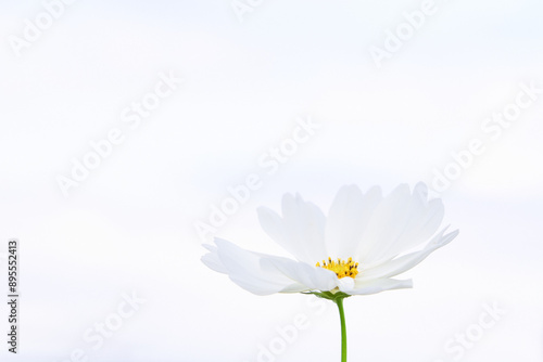 白背景の一輪の白色のコスモスの花のクローズアップ