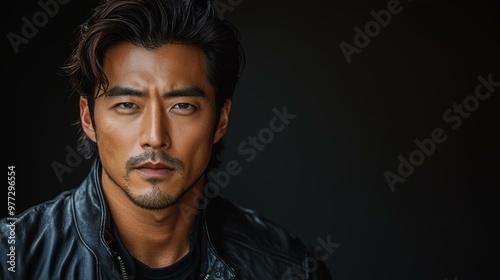 가죽 재킷을 입은 강렬한 남자의 초상화