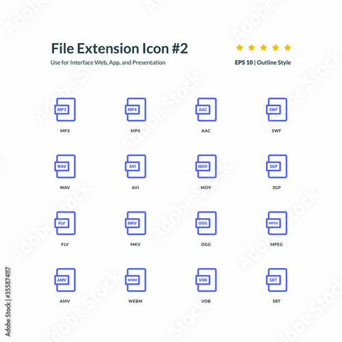File extension icon set interface app part 2 vector graphic design illustration for interface mobile web presentation