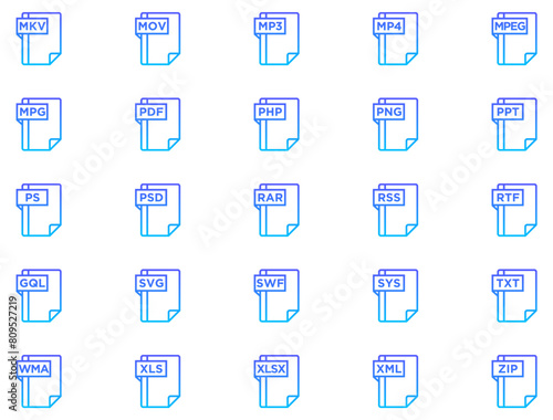 File Formats Line Gradient Icon pictogram symbol visual illustration Set