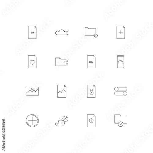 Files And Folders, Sign linear thin icons set. Outlined simple vector icons