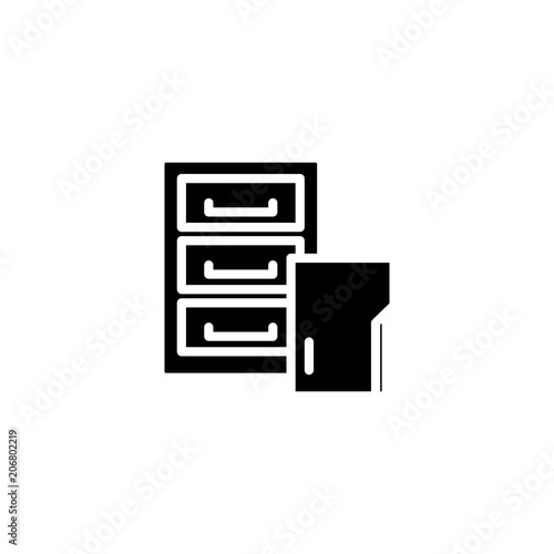 Filing cabinet black icon concept. Filing cabinet flat vector symbol, sign, illustration.
