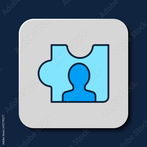 Filled outline Head hunting icon isolated on blue background. Business target or Employment sign. Human resource and recruitment for business. Vector