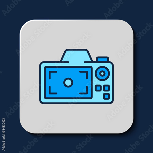 Filled outline Photo camera icon isolated on blue background. Foto camera. Digital photography. Vector